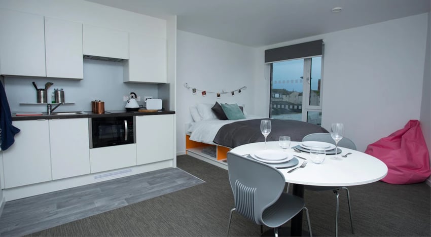 This premium student accommodation in Aberdeen is a total game-changer. The property is a modern, stylish building that offers a wide range of self-contained rooms, from Quitessential Studios for a perfect blend of space and privacy, to Luxe Plus Studios for those who need a little extra. It's for the student who values their personal space and wants to be the master of their own universe, all while being part of a vibrant, friendly community. The property is meticulously designed to provide the ultimate balance between academic focus and social fun, making it the perfect choice for anyone looking for the best student accommodation in Aberdeen city centre. With all-inclusive bills, high-speed Wi-Fi, and private bathrooms in every room, you can focus on what really matters—like your degree, or your Netflix queue.