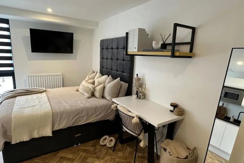 Studio Edition II: Slightly larger studio with modern furnishings and study space.