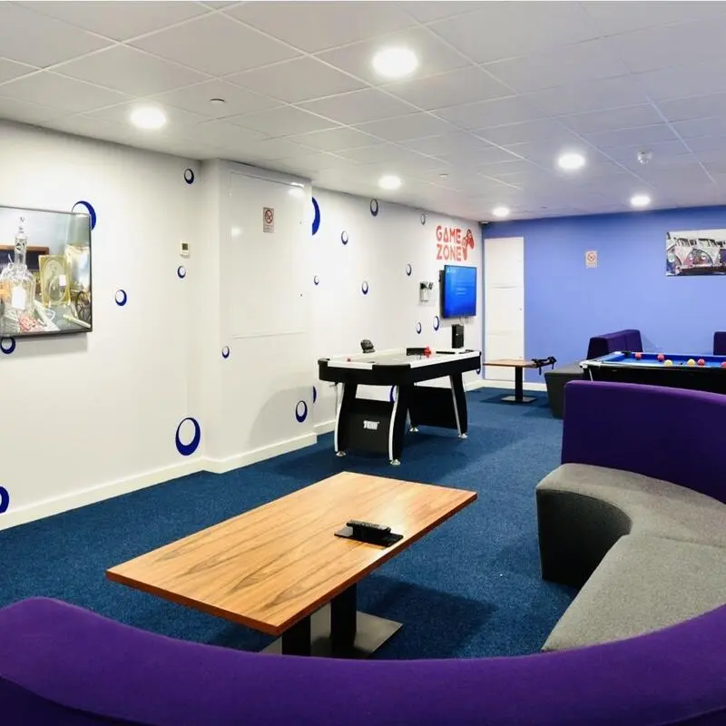 The Courtyard Block C offers luxury fully refurbished self-contained studios within 4 minutes' walk of the Huddersfield University. This carefully renovated building offers a level of style and sophistication with exposed brickwork, LED lighting and chic décor. The Courtyard Block C offers a range of studios with comfy small double beds, loads of storage space and a great work/desk area, and includes their own kitchenette. The Courtyard Block C has everything you would expect from luxury student accommodation, such as bio-metric door entry, flat screen TV, superfast wi-fi, and one of the largest outside space of any student accommodation in Huddersfield with communal seating, barbeque area and much more._x005F The Courtyard Block C has access to a huge open plan space designed to calm, excite and stir the senses. It has an entertainment area, equipped with a pool table, air hockey, PS4 Gaming Zone along with a large TVs and a multi-functional big cinema sound screen room, offering you the opportunity to watch the latest cinema releases on your doorstep. _x005F With fabulous living spaces, relaxing, outdoor courtyard spaces and luxurious accommodation, giving you the ultimate student experience. If you're looking for student accommodation in Huddersfield, then The Courtyard Block C is a great choice.