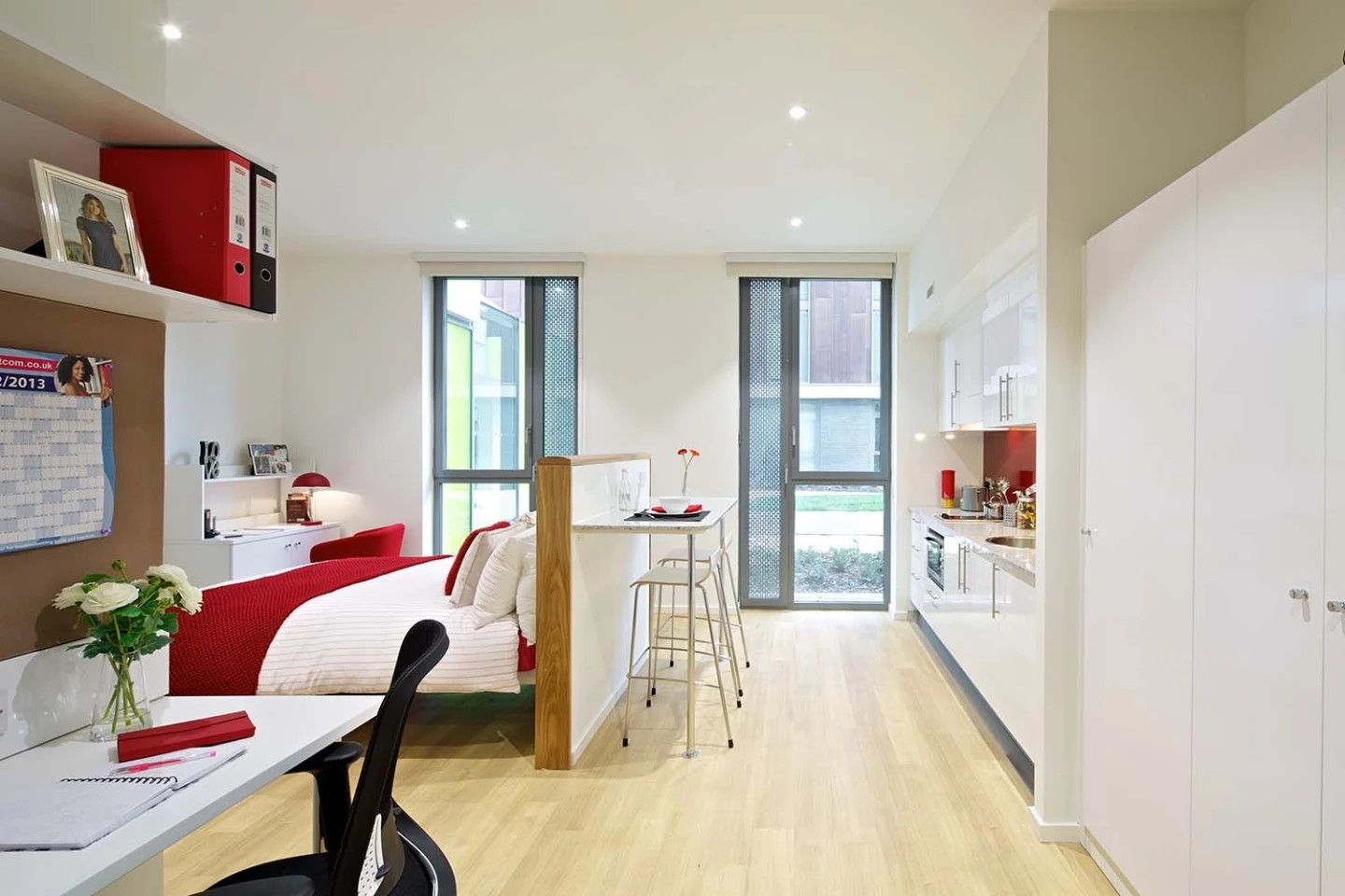 Deluxe Studio: The ultimate flex in student living, offering a spacious floor plan with premium finishes and a high-spec kitchenette.