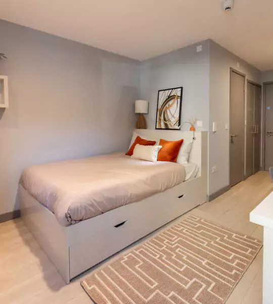 For those who treat themselves (as you should), the Premium Studio and the top-tier Superior Studio offer maximum space and often boast the best positioning in the building, sometimes located on higher floors with better views. Every single studio, from the Classic Studio to the Superior Studio, comes with a cozy double bed, a private en-suite bathroom, a dedicated study area, and your own fully-fitted kitchenette. This means no waiting for the shower and no flatmate drama over washing up—just pure, unadulterated privacy.